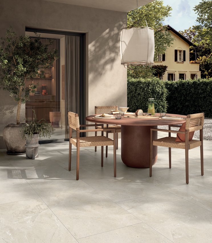 Le superfici in gres porcellanato per esterni rappresentano una soluzione ideale per creare continuità tra indoor e outdoor, grazie alla loro resistenza agli agenti atmosferici, agli sbalzi termici e all’usura. Mantengono inalterata la loro estetica nel tempo, offrendo al contempo facilità di manutenzione e alte prestazioni tecniche.