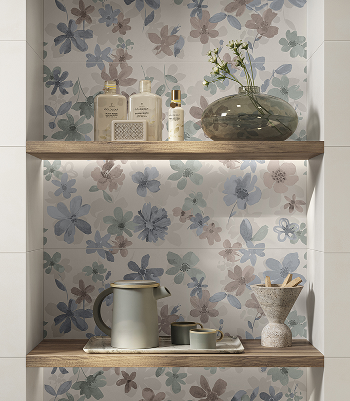 La sua ricca gamma decorativa combina righe, acquerelli, geometrie e rilievi per creare pareti decorative e rivestimenti in ceramica leggeri ed eleganti, ideali anche per living e camere da letto. Lullaby è una collezione che trasforma la semplicità in poesia visiva, portando un tocco di dolcezza in ogni progetto d’arredo.