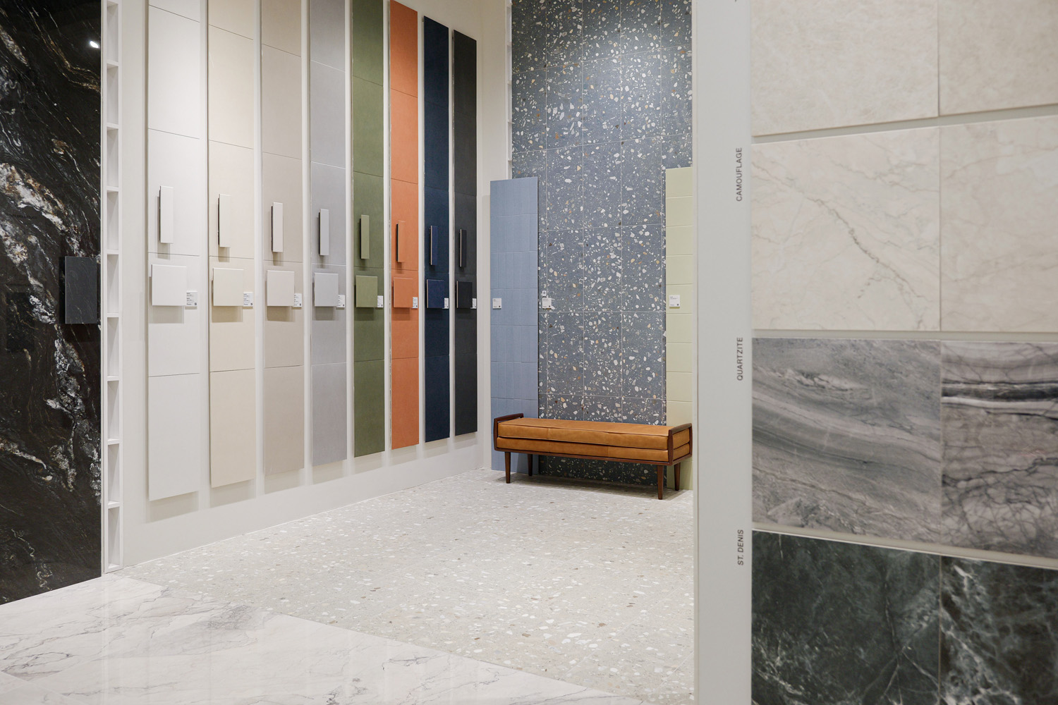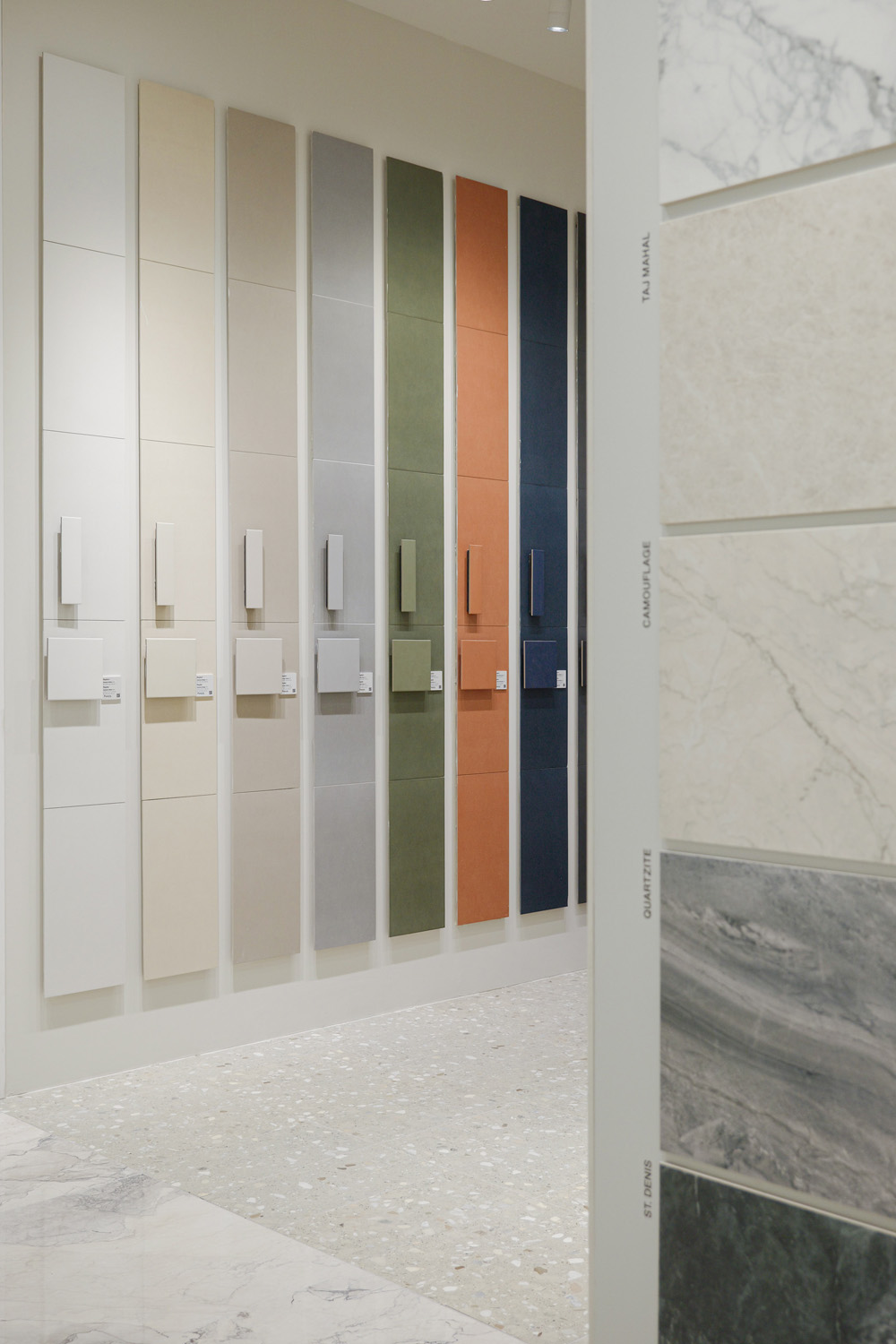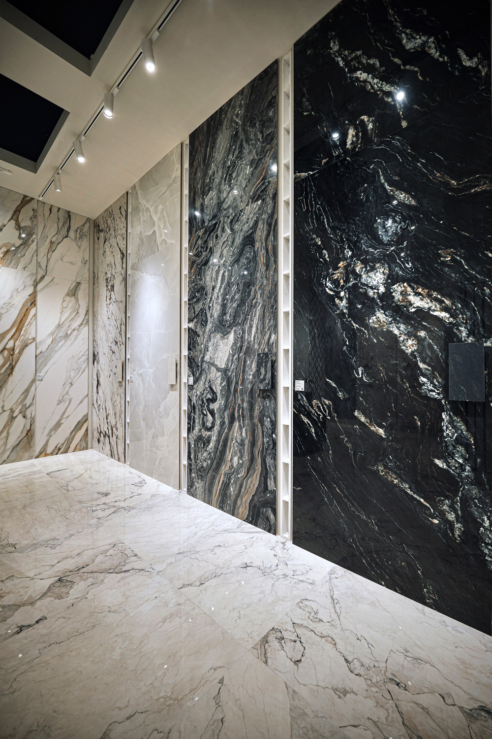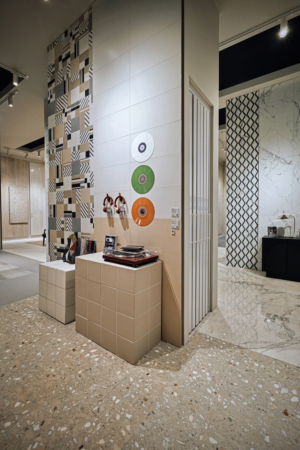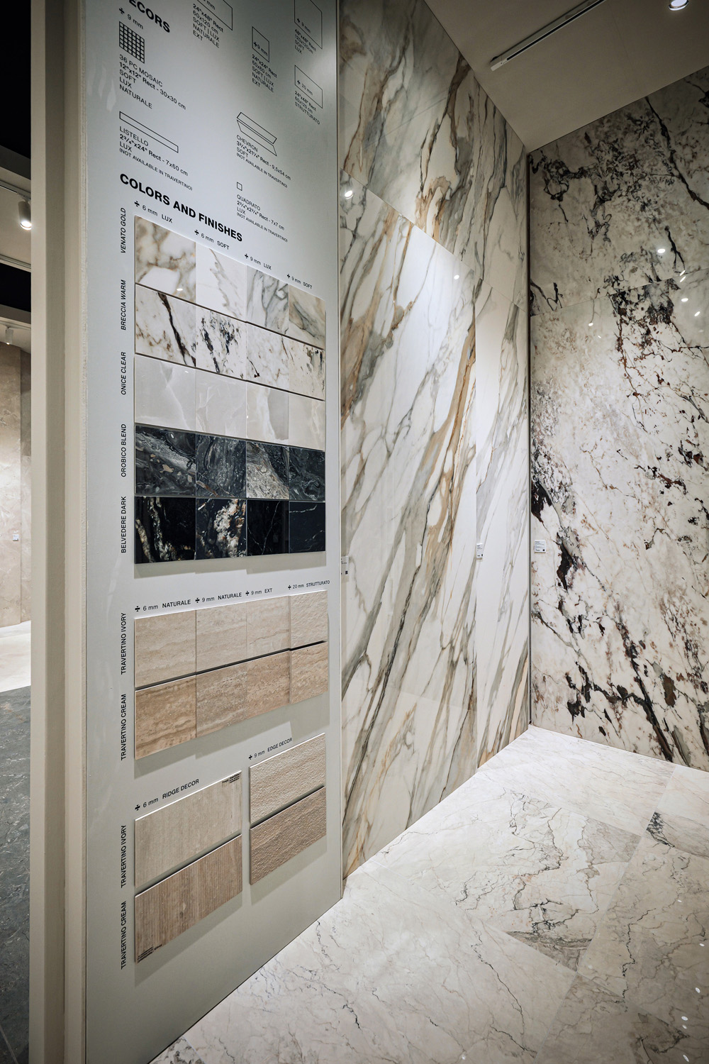 Al centro della proposta, Revel ha raccontato una materia intensa e contemporanea, ispirata alla pietra e pensata per dare agli spazi profondità, equilibrio e carattere. Accanto a lei, Perpetual ha espresso un’eleganza più luminosa e sofisticata, rileggendo il fascino di marmi e travertini in una chiave attuale, versatile, accogliente.
