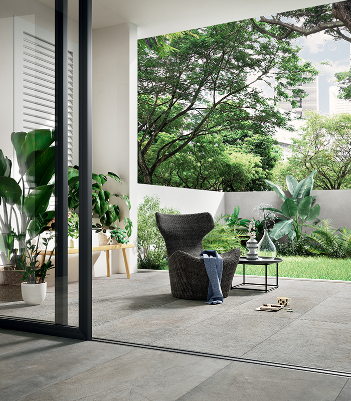 Le collezioni in gres porcellanato effetto pietra di Panaria per la realizzazione di spazi sempre unici