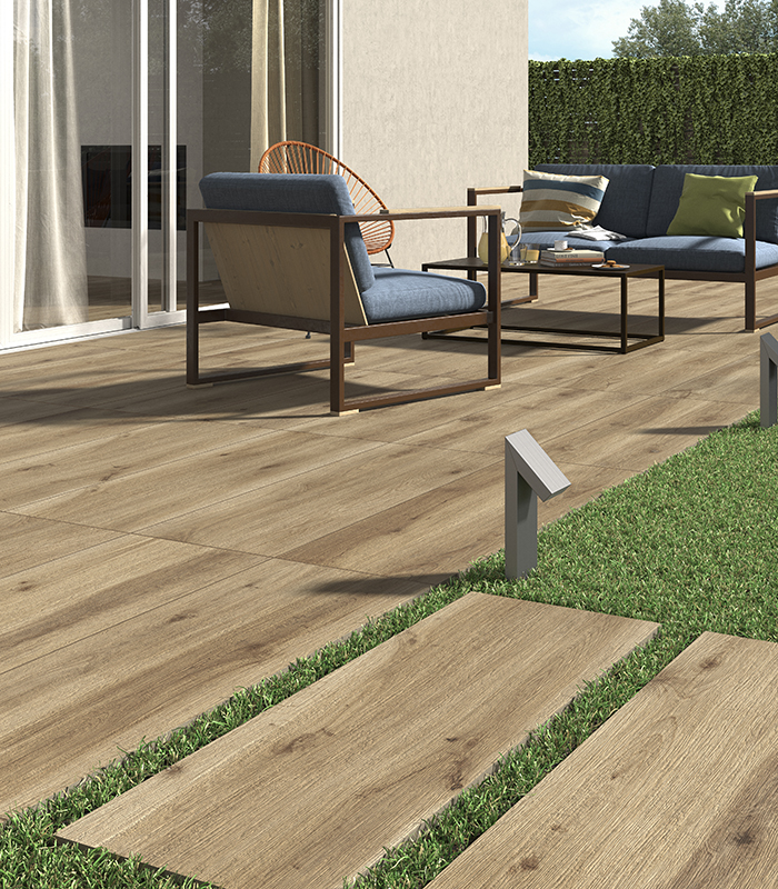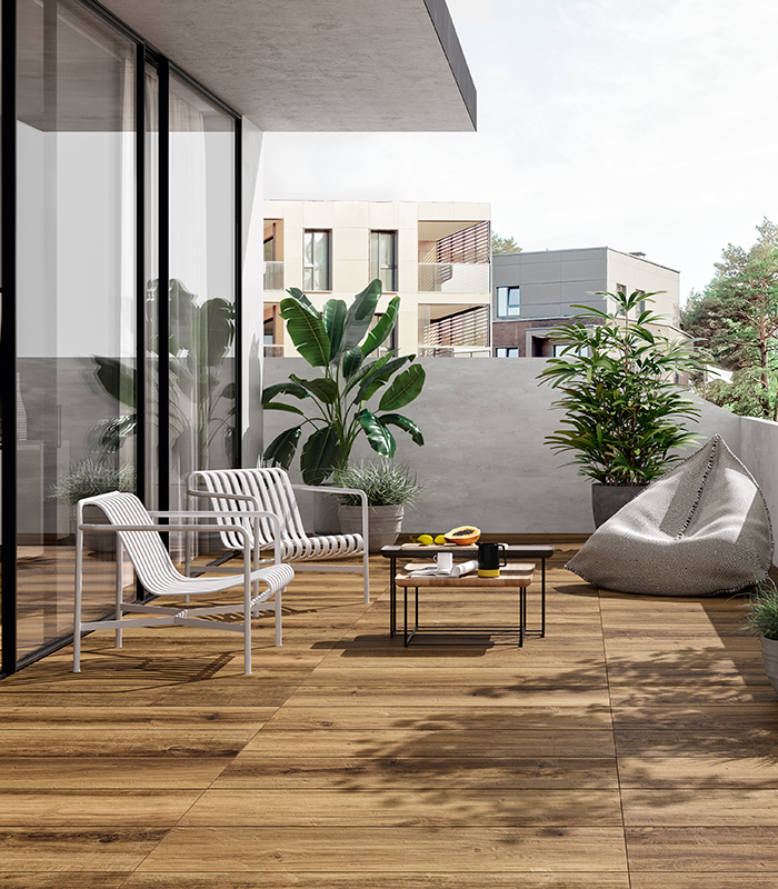 La purezza e il calore di superfici effetto legno sono restituiti da Nuance, una proposta dedicata ai terrazzi e ai balconi più sobri e con una estetica morbida e variegata, perfetta per creare continuità con la pavimentazione di tutta la casa.