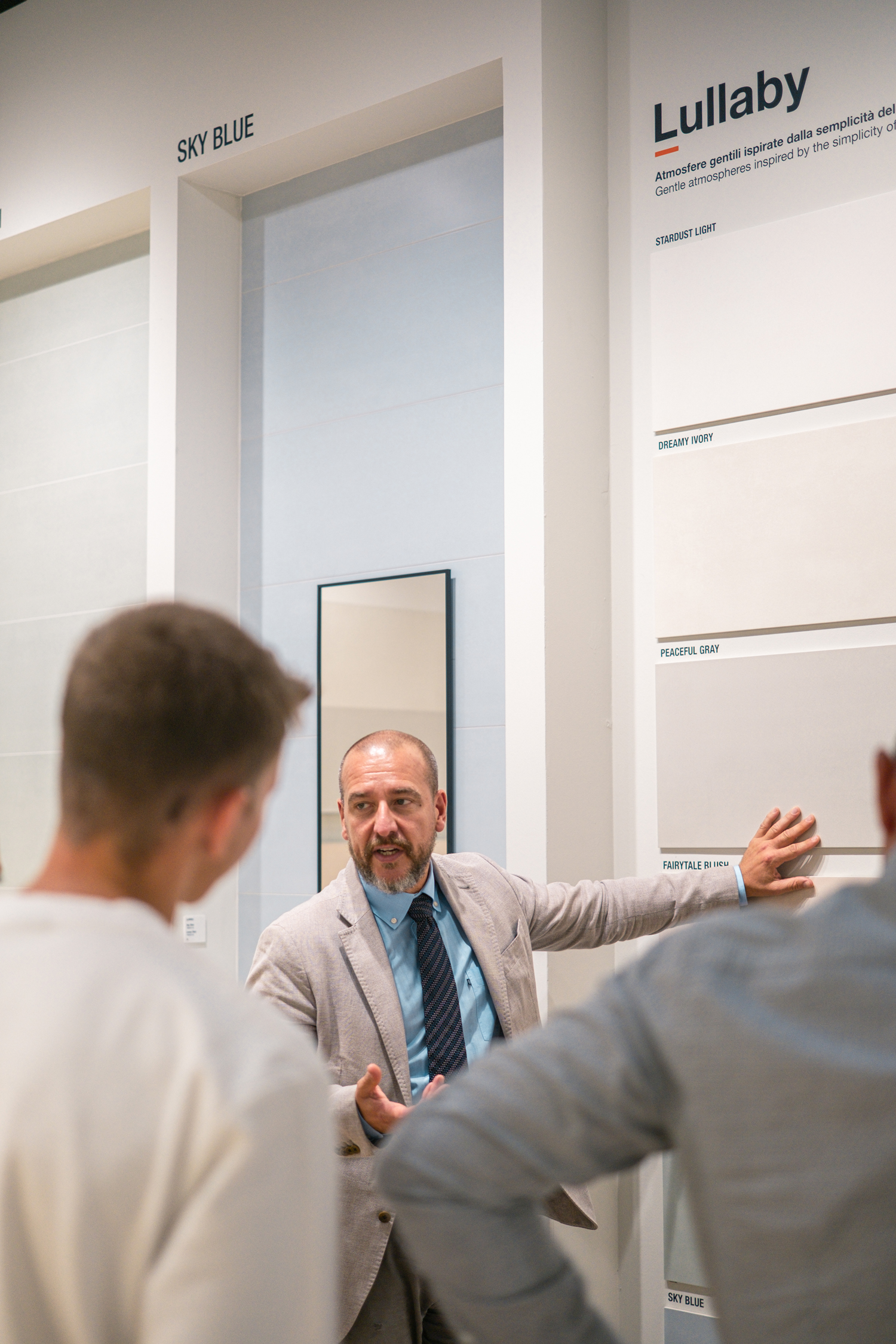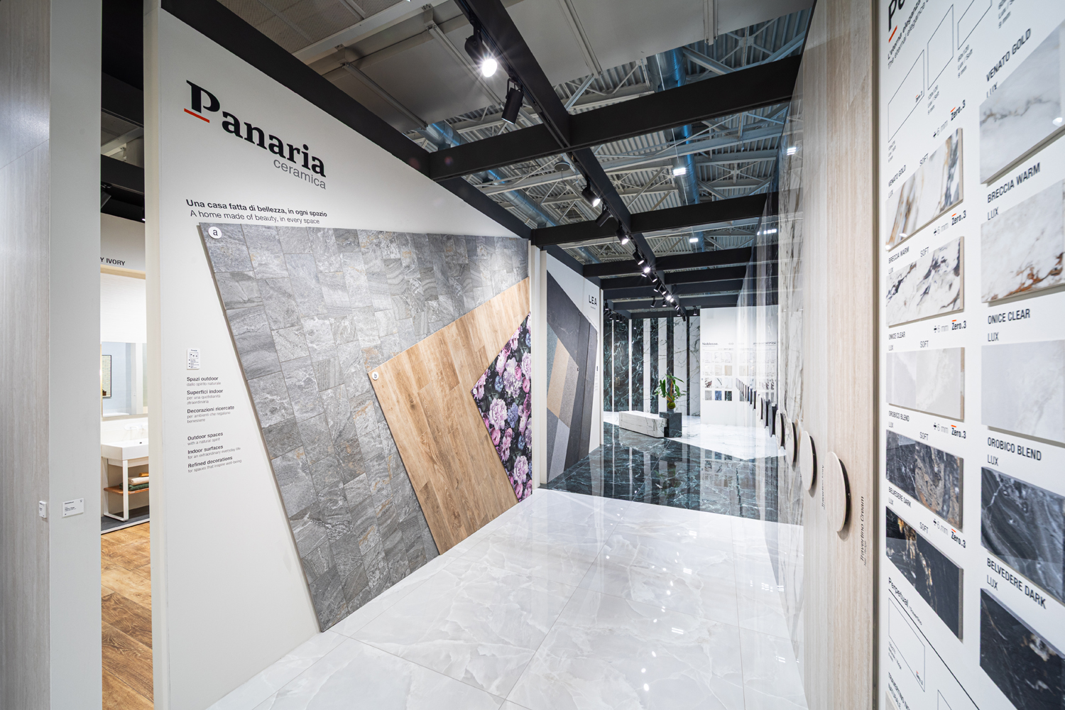 Cuore di questa esperienza è stata Revel, la nuova collezione effetto pietra di Panaria Ceramica nata dal desiderio di creare qualcosa di unico. Una celebrazione della materia, pensata per trasformare ogni spazio in un’esperienza sensoriale. Le sue superfici non restano mai immobili: si animano di sfumature, respirano di luce e ombra, mutano con eleganza continua. Revel è molto più che una collezione, è una materia che vive, vibra e avvolge gli ambienti con un’energia autentica e una raffinatezza contemporanea.
