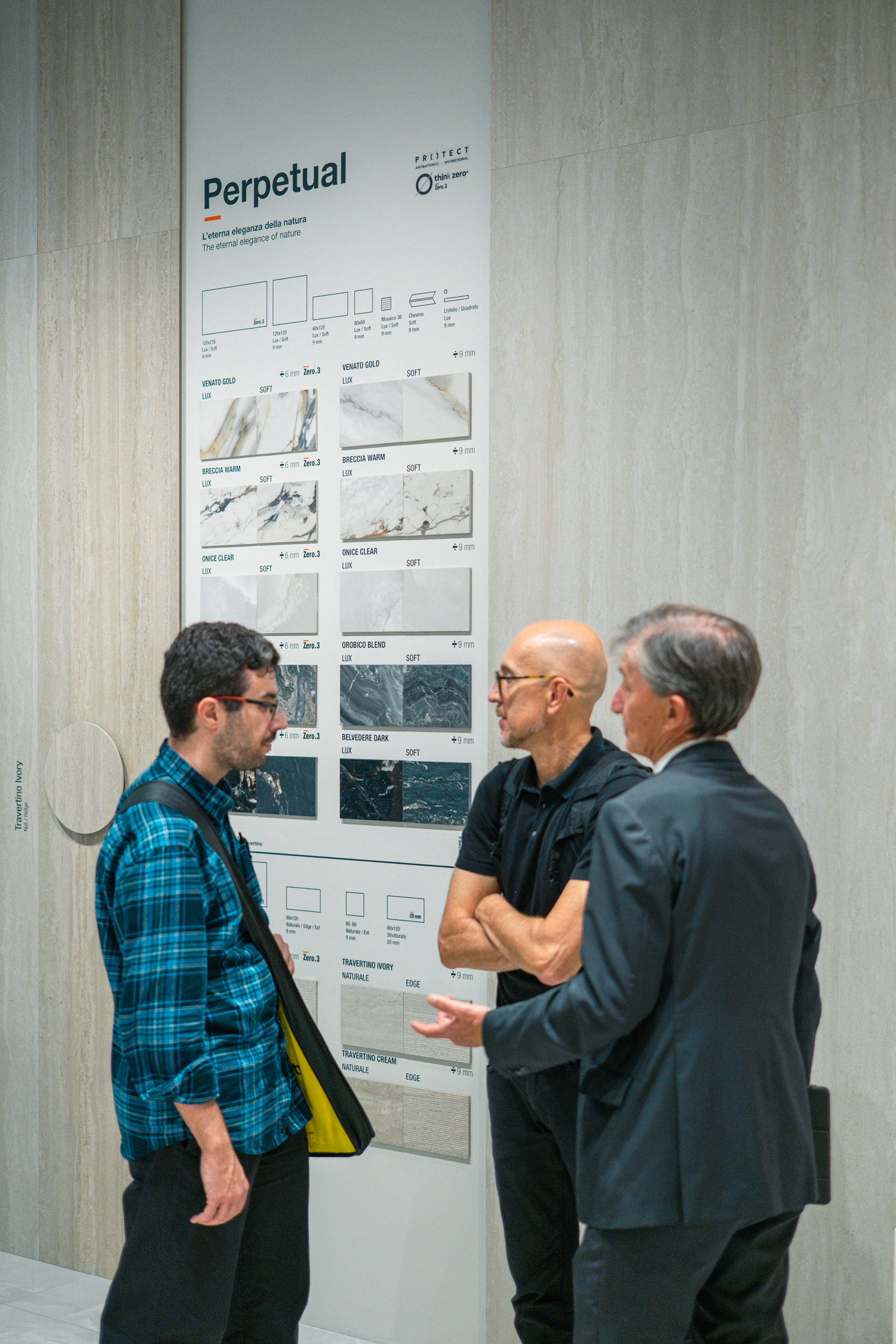 Ultimo ma non meno importante, Perpetual / Travertino – l' evoluzione della collezione effetto marmo lanciata nel 2023 – introduce due nuove superfici ispirate alla nobiltà del travertino vein cut, con texture profonde e sofisticate, dal linguaggio visivo contemporaneo e armonioso. Inoltre, la collezione si completa con lo spessore 20 mm, perfetto per pavimentazioni esterne resistenti e durature, che permettono di progettare soluzioni di continuità stilistica tra interno ed esterno, creando spazi armonici e senza soluzione di continuità, capaci di valorizzare l’eleganza senza tempo dell’effetto marmo.