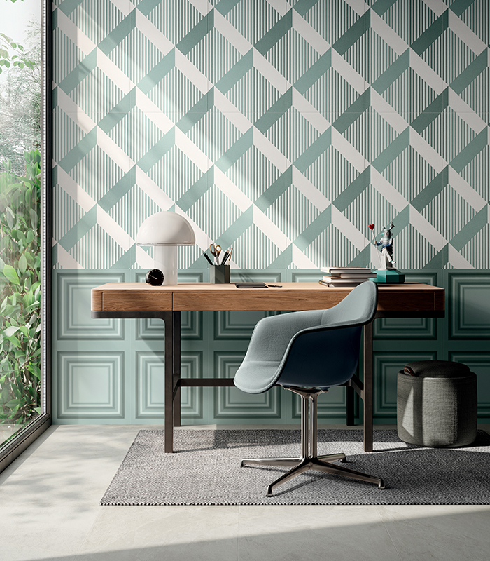 Un design degli interni contemporaneo che ben si adatti a una postazione di smartworking, richiede soluzioni che garantiscano il massimo impatto estetico con la minima invasività strutturale. Glam, ridefinendo il concetto di rivestimento verticale attraverso un'innovazione che unisce leggerezza e resistenza, è la collezione perfetta per queste esigenze.