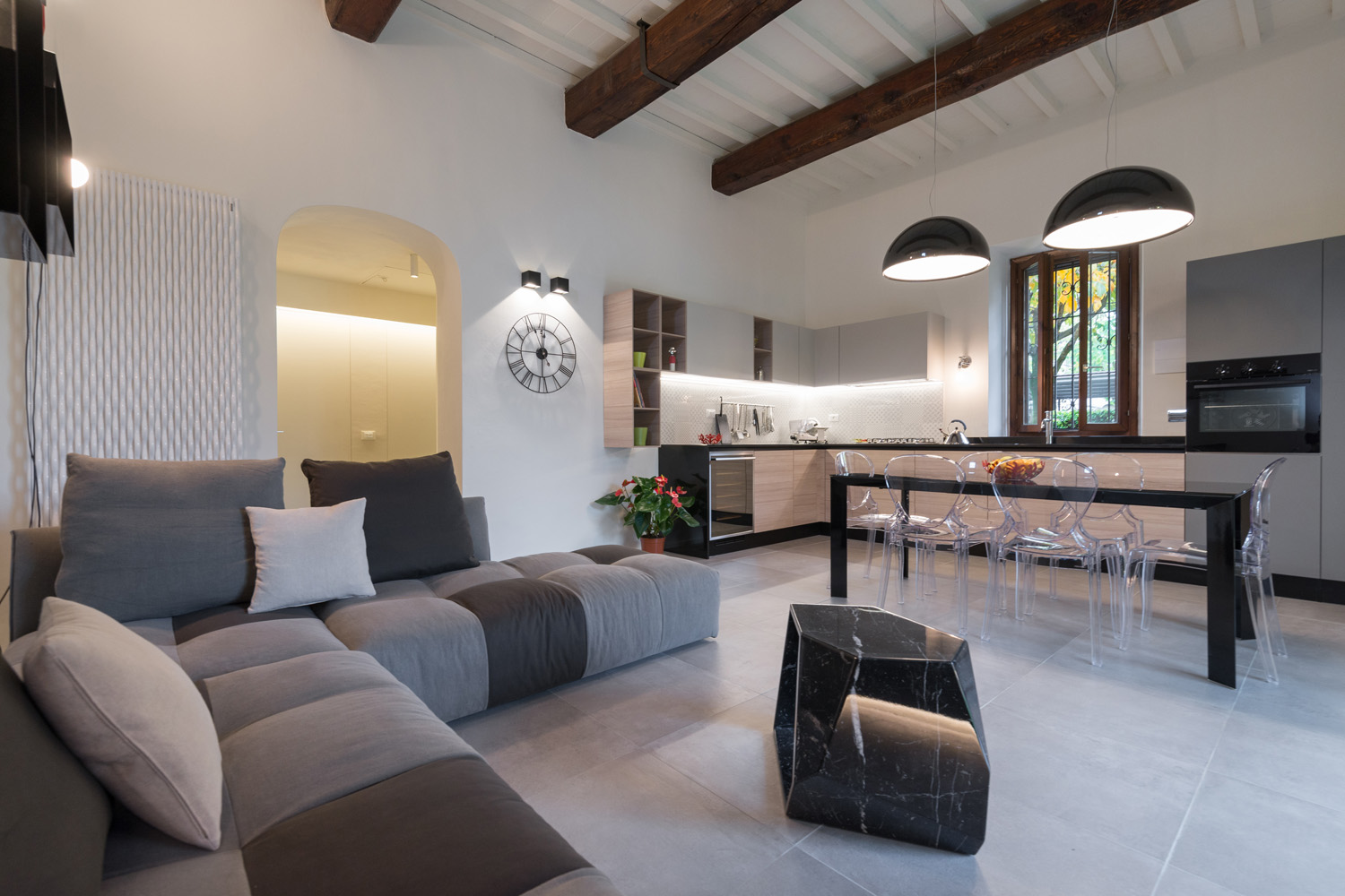 Panaria Ceramica ha arricchito il progetto rivestendo le superfici della casa e valorizzandone il carattere contemporaneo. In particolare, i progettisti hanno scelto l’estetica raffinata e performante della collezione effetto cemento Urbanature nella versione Portland 60x60 cm, una collezione dal carattere industriale che rappresenta l’evoluzione metropolitana dello stile attraverso la riscoperta dei materiali elementari che compongono il tessuto urbano. Come quasi tutte le collezioni di Panaria Ceramica, anche Urbanature gode della protezione PROTECT®, lo scudo antibatterico incorporato nel prodotto ceramico, che elimina fino al 99,9% dei batteri dalla superficie.